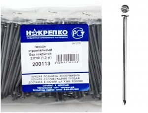 200113 Гвоздь строительный без покрытия 3,0*80 (1,0 кг EC) НАКРЕПКО