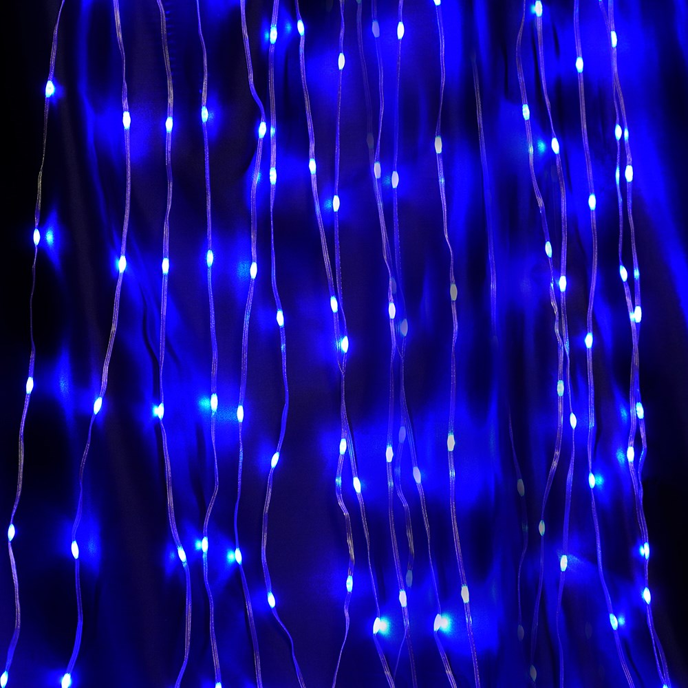 Гирлянда дождь FERON CL28, 450LED, (синий), настраивается контроллером, 3*3м+3м белый шнур, расстояние между светодиодами 10см, IP44, 5,4W, от сети последовательное подключение - НЕТ