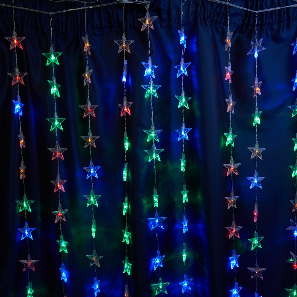 48609 CL25 230V 100 LED 2*1м, мультиколор, IP20, сетевой шнур 3м Гирлянда - занавес Звёздочки FERON (Китай)