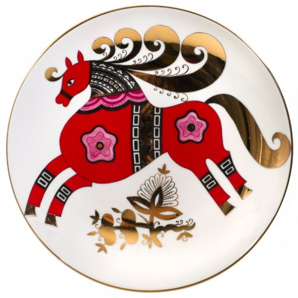 80.89344.00.1 Декоративная тарелка 195 мм, форма Эллипс, рисунок Красный конь, ИФЗ