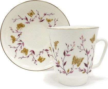 81.13735.00.1 Чашка с блюдцем ИФЗ Майская, Розовые веточки, 165мл, костяной фарфор, ИФЗ