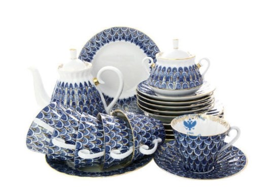81.14821.01.1 Сервиз чайный форма Лучистая, рисунок Незабудка, 6/20 предметов, АО "Императорский фарфоровый завод"