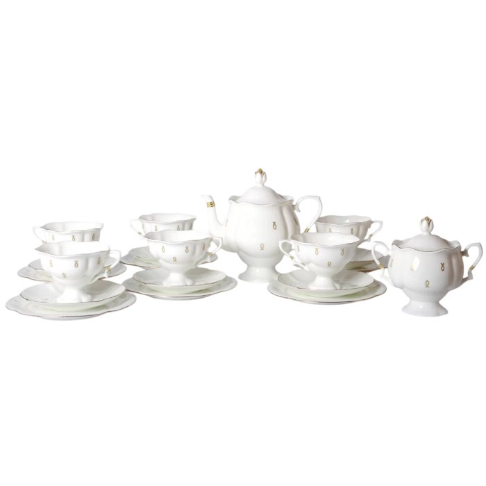 • 20 предметов: чайник, сахарница, 6 чашек, 6 блюдец и 6 тарелок.