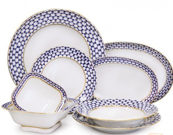 Сервиз столовый Кобальтовая сетка, форма Молодёжная, Императорский фарфоровый завод, 24 предмета на 6 персон