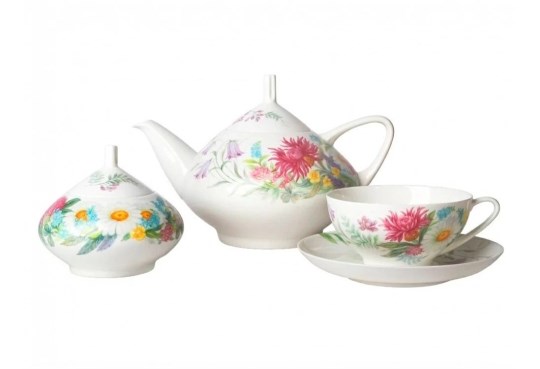 81.23109.00.1 Сервиз чайный форма Купольная, рисунок Полевые цветы, 6/14 предметов, АО "Императорский фарфоровый завод"