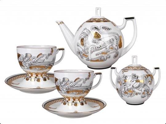 81.23921.00.1 Сервиз чайный форма Анданте рисунок Русский модерн, 14 предметов АО "Императорский фарфоровый завод"