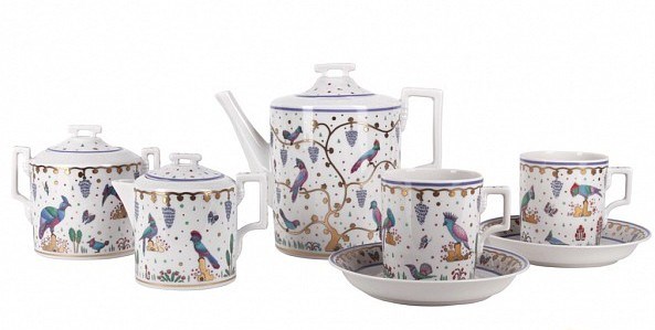 81.24302.00.1 Сервиз чайный ИФЗ Гербовая, Нескучный сад, 15 предметов, фарфор, АО "Императорский фарфоровый завод"