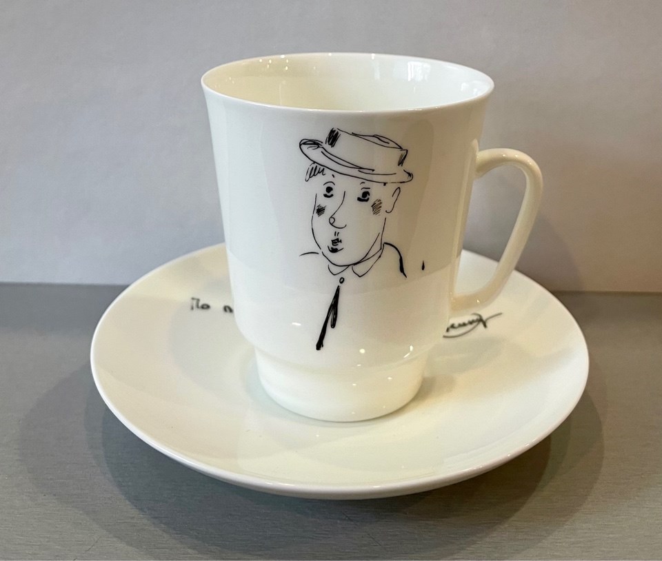 Чашка с блюдцем Автопортрет Юрия Никулина, форма Майская, Императорский фарфоровый завод: