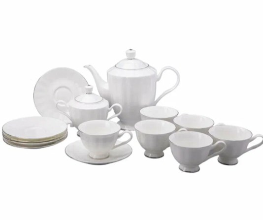 Сервиз чайный Платиновая лента, форма Нега, Императорский фарфоровый завод, 14 предметов на 6 персон
