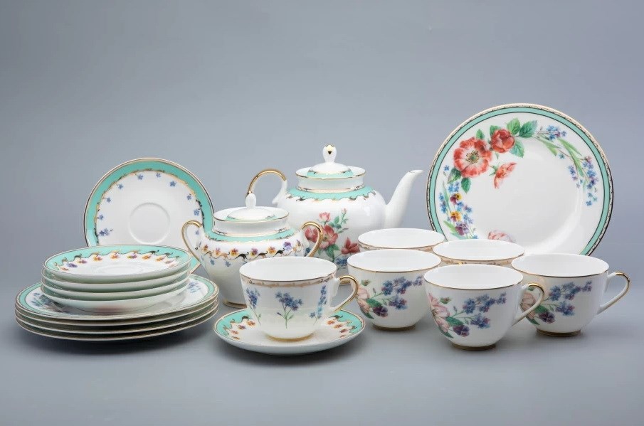 81.30750.00.1 Сервиз чайный форма Весенняя-2 рисунок Улыбка флоры, 6 персон, 20 предметов АО "Императорский фарфоровый завод"