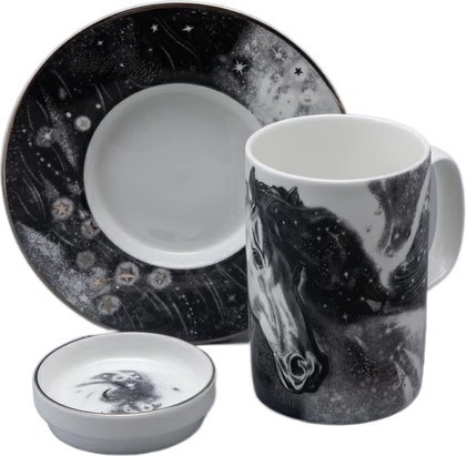 Серия «Чёрный мустанг» состоит из оригинального бокала с блюдцем и крышкой, а также декоративной тарелки, подходящей для украшения интерьера гостиной, кухни или кабинета. Простота и утонченность дизайна позволят гармонично вписать изделия во многие направления декора – от классической роскоши до строгого минимализма. Серия «Черный мустанг» станет прекрасным подарком к наступающим праздникам, дополнением вашего жилого пространства, подарит атмосферу уверенности и гармонии.