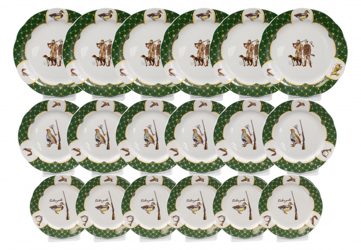 Набор тарелок Охота Вырезной край зеленый, 18 шт, Дулево