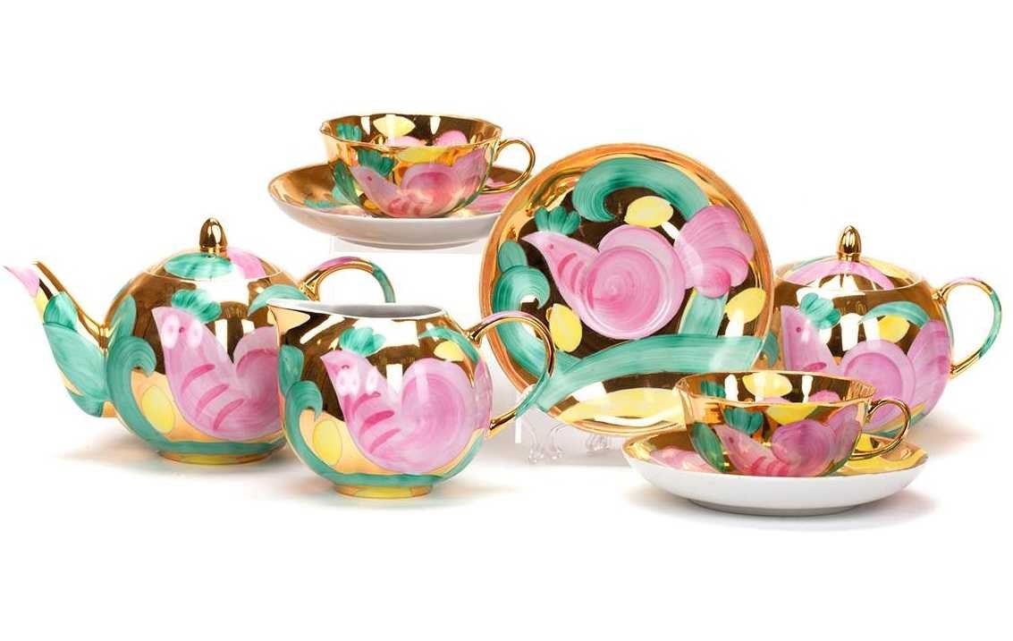 Сервиз чайный Розовая птица, 6/15 предметов, форма Тюльпан, Дулево