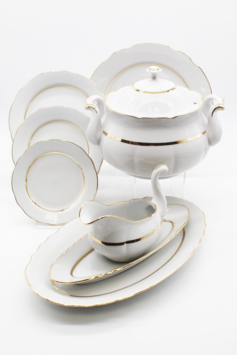 Сервиз столовый Монреаль от производителя Дулёвский фарфор. Состоит из 29 предметов, рассчитан на 6 персон. Тарелка 175 мм - 6 шт. Тарелка 200 мм - 6 шт. Тарелка мелкая 240 мм - 6 шт. Тарелка глубокая 240 мм - 6 шт. Блюдо круглое 300 мм - 1 шт. Блюдо овальное 350 мм - 1 шт. Салатник 1200 мл - 1 шт. Селёдочница 300 мм - 1 шт. Супница 3000 мл - 1 ш Материал: фарфор. Рекомендуется мыть вручную с использованием мягких моющих средств. Нельзя мыть в посудомоечной машине.